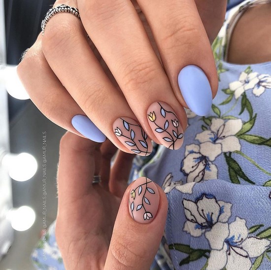 En sådan pastell nageldesign 2024-2025 är perfekt i kombination med tryckta naglar, som är relevanta för dig, liksom matt pastellösningar i ombre stil.