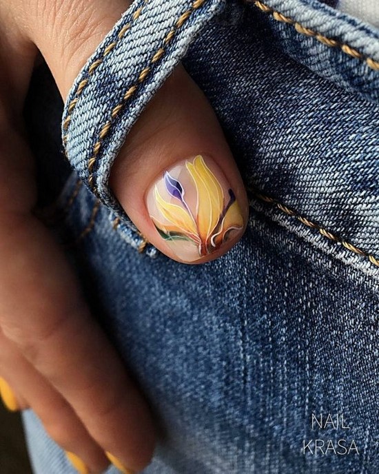 Om du bara överväger pastell naglar för dig själv, titta närmare på naglarna med blommor, som både kan kontrastera och skugga pastellernas dämpade toner.